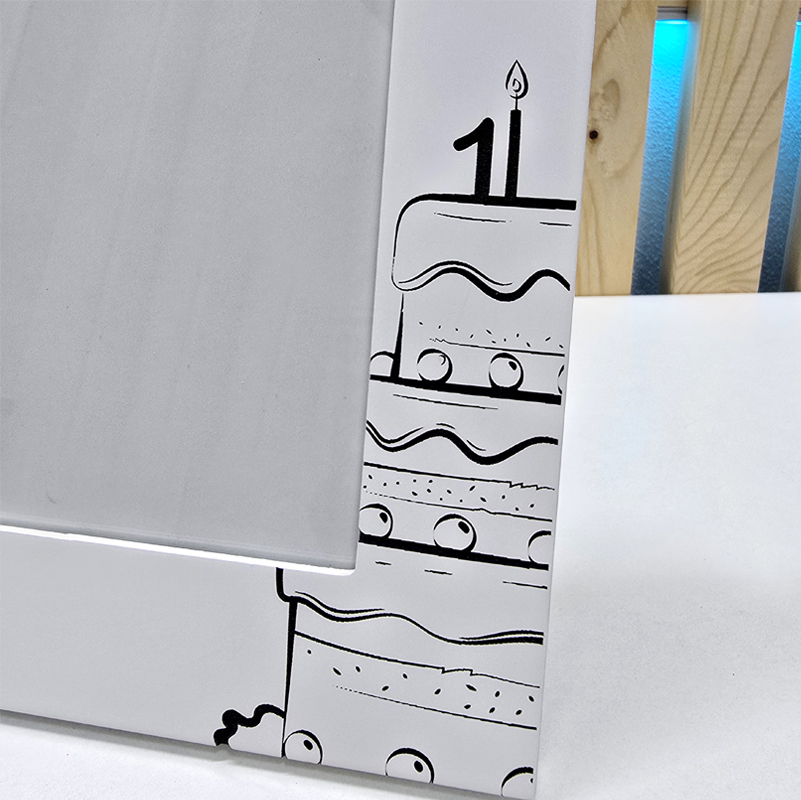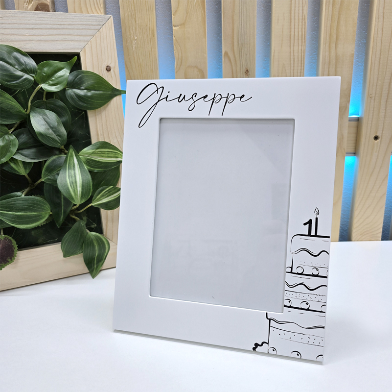 Cornice incisa con nome e torta di compleanno rendendo unico un giorno così importante!