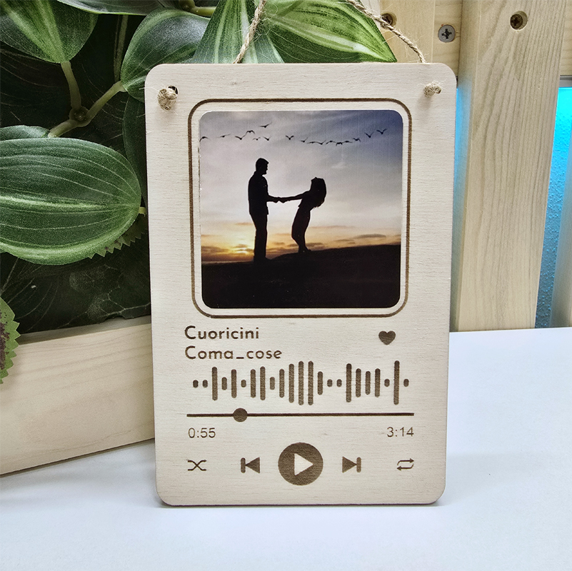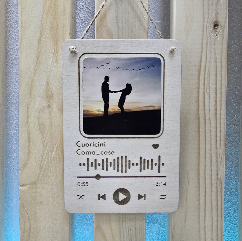 Rendi unico e speciale qualsiasi momento per la tua dolce metà o per una persona a te cara. Personalizza questa targhetta con la traccia audio Spotify e una foto che ricordi un’istante importante della vostra vita!